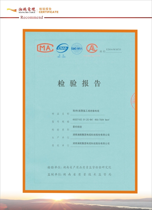 湘鶴電纜檢驗報告